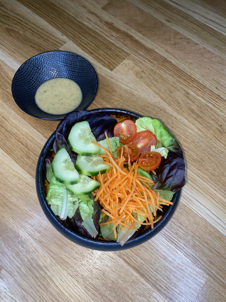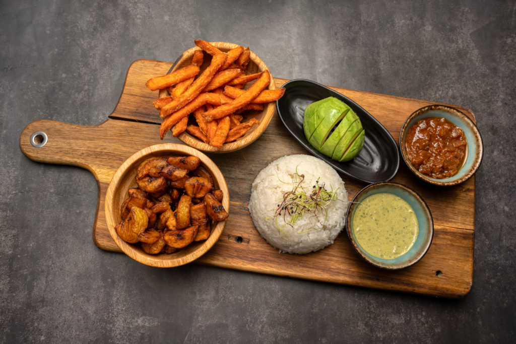 VEGAN’RUBI 18€ (Riz blanc, salade exotique, frites de patate douce, aloco, avocat)